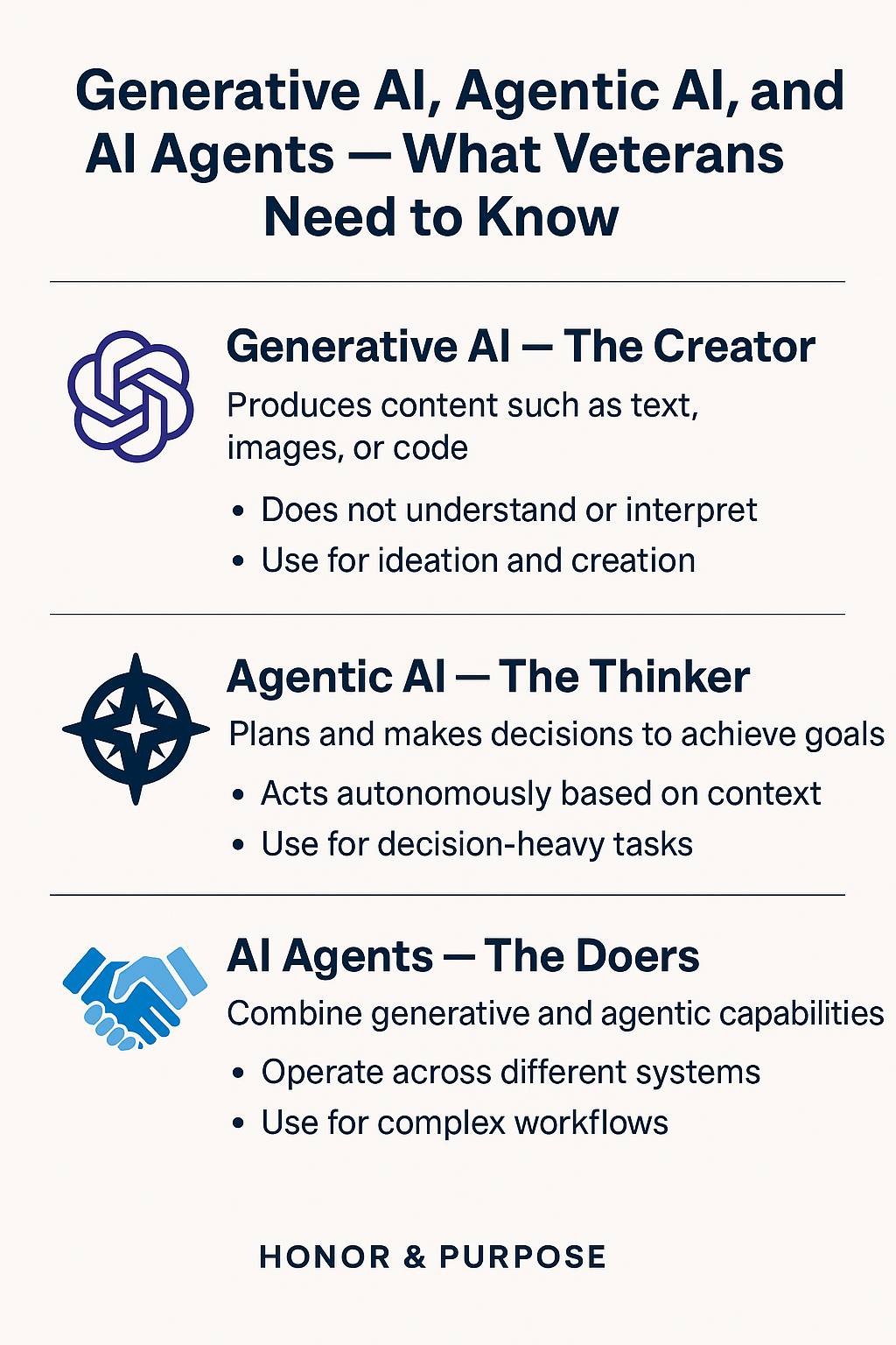 And while that support grows, AI itself keeps evolving. Our feature this week breaks down the next frontier, Generative AI vs Agentic AI vs AI Agents, and what it means for veterans learning to lead in a tech-driven economy.